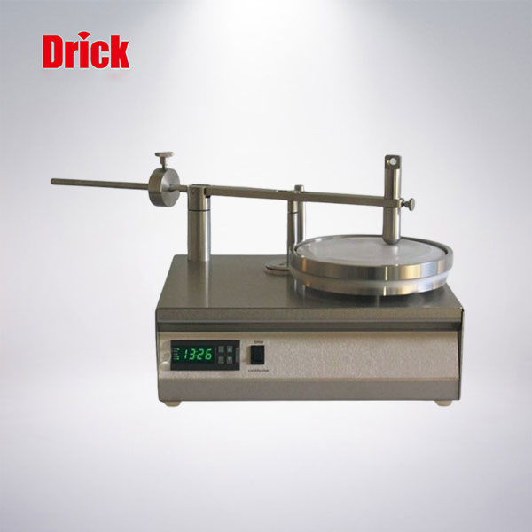 儀器有一個電驅(qū)動、電子計時器控制、轉(zhuǎn)速為60rpm的轉(zhuǎn)盤,轉(zhuǎn)盤上可安裝一個14cm直徑的瓊脂培養(yǎng)皿。帶有試驗指的平衡桿被一個轉(zhuǎn)速為5.60rpm的偏心軸所引導,可使重力為3±0.02N的試驗指從轉(zhuǎn)盤的中心向周邊作側(cè)向的往復運動。在一個試驗周期內(nèi),兩個運動的疊加,能使試驗指的作用軌跡均勻布滿整個圓盤表面??傊亓繛?00±1g的內(nèi)外鋼環(huán)在試驗中用以夾持供試材料并對材料施加標準的繃緊力。儀器還附帶一個直徑9cm,高4cm的圓柱體,用于在三層材料的固定過程中提供平整的表面和統(tǒng)一的繃緊度。